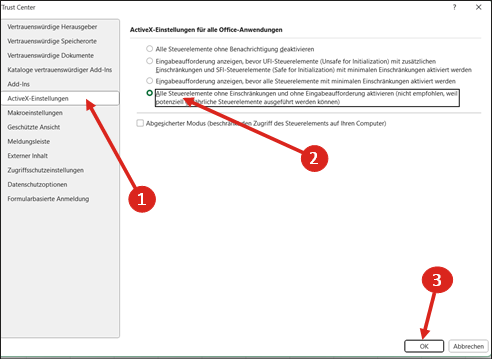 - Active X-Komponenten & Makros aktivieren